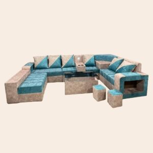 This elegant blue 2-2-1 sofa set includes two double-seater sofas and one single-seater, offering both comfort and style. Upholstered in premium blue fabric, it brings a calm and modern touch to your living space. With soft cushions and a strong wooden frame, it’s perfect for relaxing or entertaining guests. The compact design makes it ideal for any living room setting.